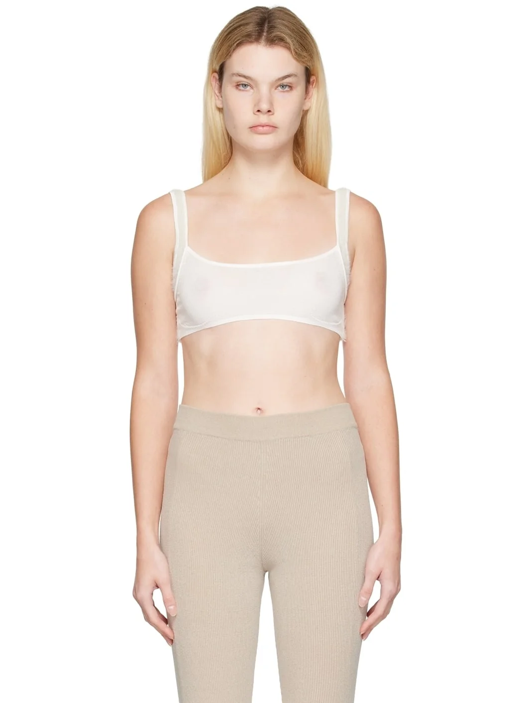 Paneled knit and rib knit stretch nylon-blend bra. · Square neck · Fixed shoulder straps · Unlined Part of the Le Papier collection. Supplier color: White 70% polyamide, 12% cotton, 12% viscose, 5% polyester, 1% elastane. Made in Portugal 222553F073020