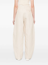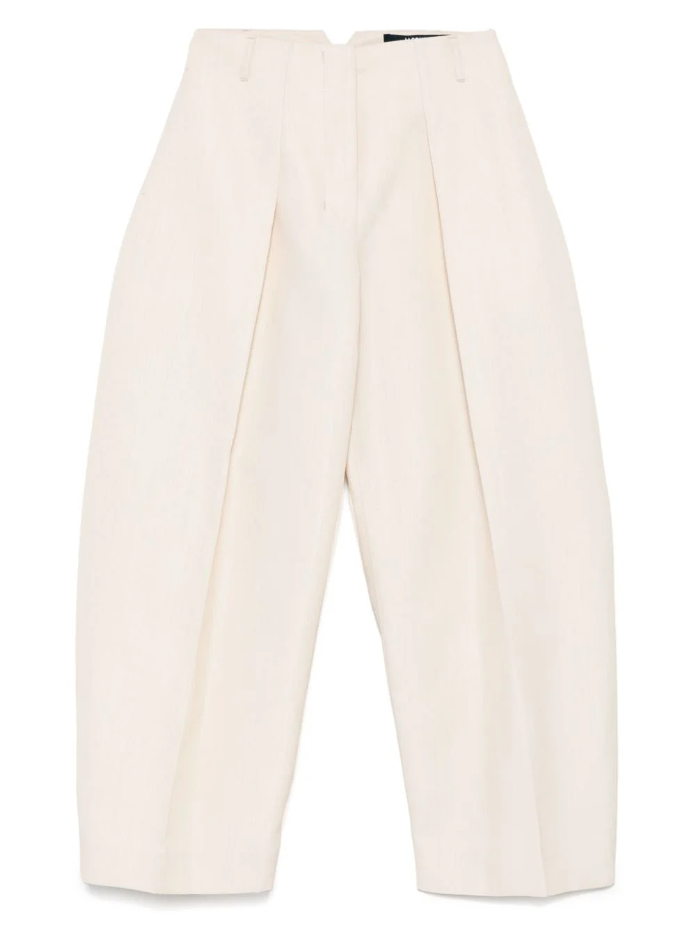 Le Pantalon Ovalo trousers Highlights - Light beige - Concealed front button, hook and zip fastening - Belt loops - Two side inset pockets - Rear button-fastening pocket Imported Composition Outer: Polyester 63%, Virgin Wool 37% Lining: Cotton 97%, Spandex/Elastane 3% SIZE & FIT Model measurements Height 5 ft 9 in(1.75 m) Bust/Chest 31.88 in(81 cm) Hips 34.64 in(88 cm) Waist 24.01 in(61 cm) FittingInformation Designed with a wide-leg cut, these trousers allow for a close fit at the waist and offer a loose and roomy fit over the leg Made from a midweight non-stretch fabric Washing instructions Dry Clean Only