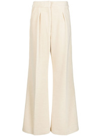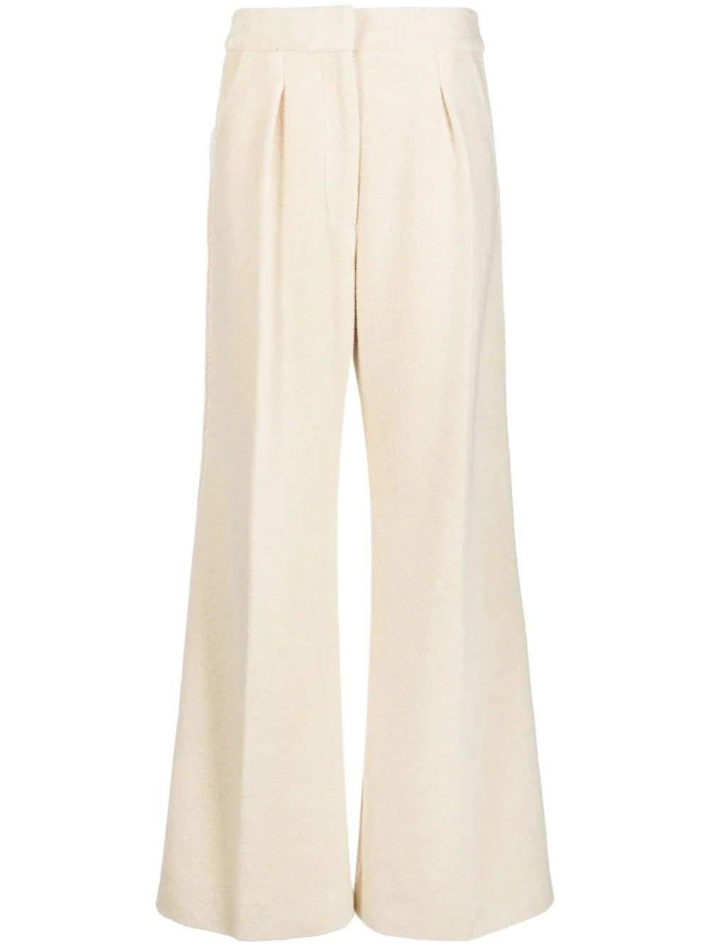 wide-leg flared trousers Made from soft towelling cotton with a hint of stretch, these trousers from Jacquemus combine comfort with a breezy wide-leg silhouette. The pair arrives in a light beige colourway - an example of the brand's use of understated palettes. Highlights - Light beige - Stretch-cotton - Towelling finish - High-waisted - Concealed front fastening - Wide leg - Slip pockets to the sides - Two rear patch pockets Imported Composition Outer: Cotton 100% Lining: Cotton 97%, Spandex/Elastane 3% SIZE & FIT Model measurements Height 5 ft 10 in(1.77 m) Bust/Chest 31.49 in(80 cm) Hips 33.85 in(86 cm) Waist 22.44 in(57 cm) FittingInformation Designed with a wide-leg cut, these trousers allow for a close fit at the waist and offer a loose and roomy fit over the leg Made from a midweight stretch fabric, this piece offers elasticity and flexibility when worn This piece fits true to size – take your usual size Measurement FRONT RISE 12.99 in(33 cm) INSIDE LEG 30.98 in(78.7 cm) BACK RISE 15 in(38.1 cm) HIPS 35.98 in(91.4 cm) Hem Width 25.98 in(66 cm) WAIST 30 in(76.2 cm) Washing instructions Dry Clean Only