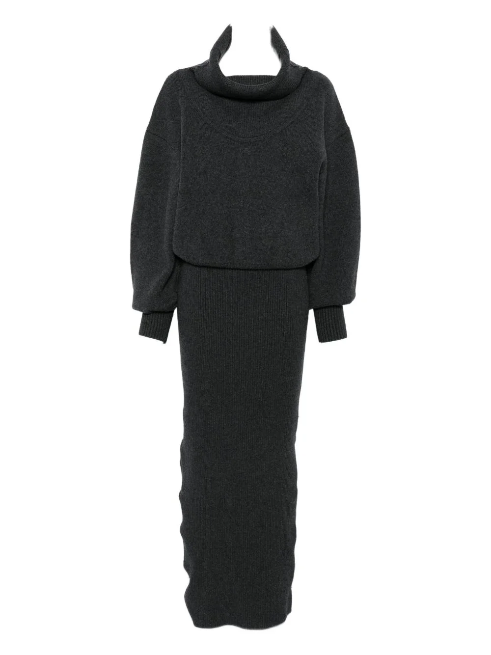 wool-blend turtleneck dress Highlights - Grey - Ribbed knit - Long sleeves - High neck Made in France Composition Virgin Wool 89%, Cashmere 9%, Polyamide 2% SIZE & FIT Model measurements Height 5 ft 11 in(1.8 m) Bust/Chest 31.49 in(80 cm) Hips 36.61 in(93 cm) Waist 24.4 in(62 cm) Washing instructions Read Manufacturer Guidelines