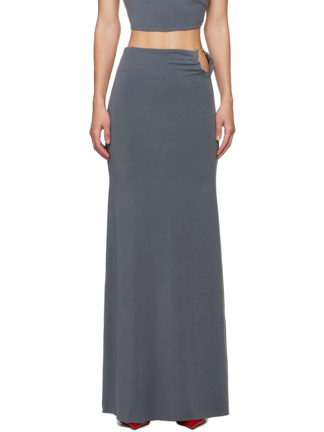 Stretch modal- and silk-blend jersey skirt. O-ring hardware at elasticized waistband. Supplier color: Dye grey 78% modal, 14% silk, 8% elastane. Made in Portugal 241772F093000