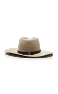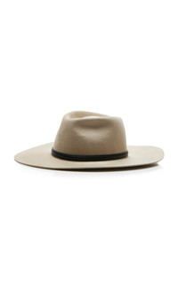 Each Janessa Leone accessory is expertly hand-crafted in Los Angeles with responsibly sourced materials and ethical practice—prioritizing people and planet above all. Beck is a modern take on the traditional fedora silhouette, with a wider flat brim and a structured wool build. A refined accessory for cooler seasons. PRODUCT DETAILS - Slip on - Composition: 100% wool, Band: leather, Hardware: brass - Designer color: Pebble - Made in the USA