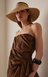 Each Janessa Leone accessory is expertly hand-crafted in Los Angeles with responsibly sourced materials and ethical practice—prioritizing people and planet above all. Crafted from raffia straw, the 'Birdie' features a crown-less design with a longer brim to shield you from the sun. PRODUCT DETAILS - Slip on - Composition: raffia - Designer color: Natural/ Chocolate - Made in the USA