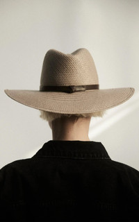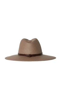 Each Janessa Leone accessory is expertly hand-crafted in Los Angeles with responsibly-sourced materials and ethical practice—prioritizing people and planet above all. A best-selling packable straw hat. Judith is finished with a rich, brown regenerative leather strap and a statement knot detail on the back. This effortless piece can easily be worn year-round and is meant for traveling with you wherever you go. PRODUCT DETAILS - This item is not eligible for expedited shipping - Slip on - UPF Rating 35+ - Composition: Endura straw, regenerative leather band - Designer color: Taupe - Made in the USA SIZE & FIT - Brim: 3.75" - Crown: 5" - Band 1/2"