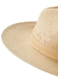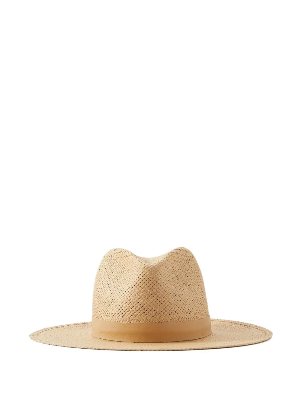 woven fedora hat Highlights - Sand - Woven texture - Leather band - Shaped crown Made in United States Composition Straw 100%, Leather 100%