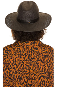 - 100% straw - Made in USA - Leather accent band - Brim measures approx 3.5" in length - Revolve Style No. JNES-WA101 - Manufacturer Style No. SS22050