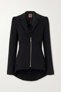 EDITORS'NOTES This blazer is part of Jean Paul Gaultier's collaboration with London-based brand KNWLS. Paneled from black stretch-crepe, the fitted waist is highlighted by small cutout panels. It has a structured, curved hem - emphasize the shape by styling yours with slim-leg pants. SIZE & FIT - Fits true to size, take your normal size - Designed for a slim fit - Lightweight, slightly stretchy fabric - Model is 177cm/ 5'10" and is wearing a FR 36 DETAILS & CARE - Black stretch-crepe - Zip fastening through front - 53% polyester, 43% wool, 4% elastane; lining: 100% cupro - Dry clean