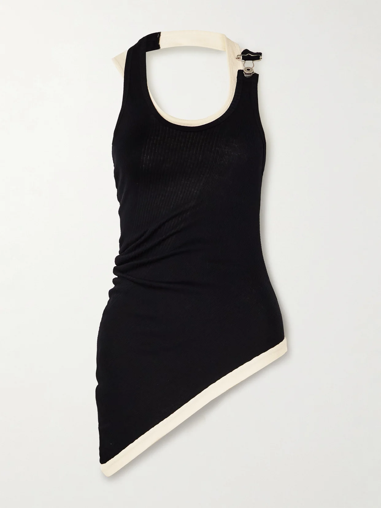 Asymmetric Layered Buckled Ribbed Cotton-jersey Tank