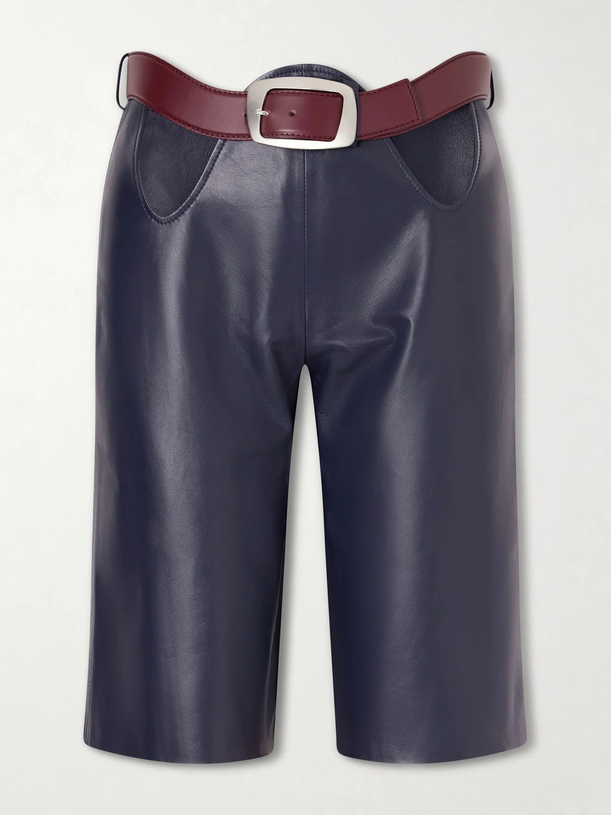 Belted Cut-out Leather Shorts