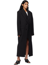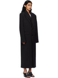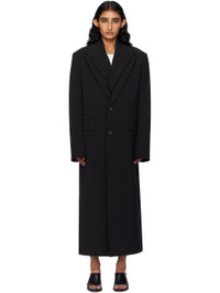 Stretch nylon gabardine coat. · Layered construction · Peaked lapels · Double-breasted button closures · Welt pocket at chest · Flap pockets at waist · Padded shoulders · Buttoned surgeon's cuffs · Locker loop at back collar · Central vent at back hem · Welt pockets at interior · Full satin twill lining · Logo-engraved horn hardware Supplier color: Black Body: 94% polyamide, 6% elastane. Lining: 100% viscose. Made in Italy 252808F059001