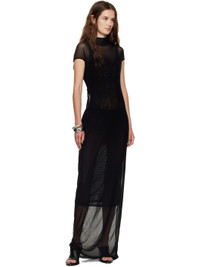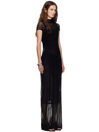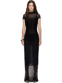 Stretch nylon mesh maxi dress. · Polka-dot pattern flocked throughout · Mock neck · Logo flocked at chest · Cutout at side seams · Cap sleeves · Locker loop at back collar · Partially lined Supplier color: Black 94% polyamide, 6% elastane. Made in Portugal 252808F055004