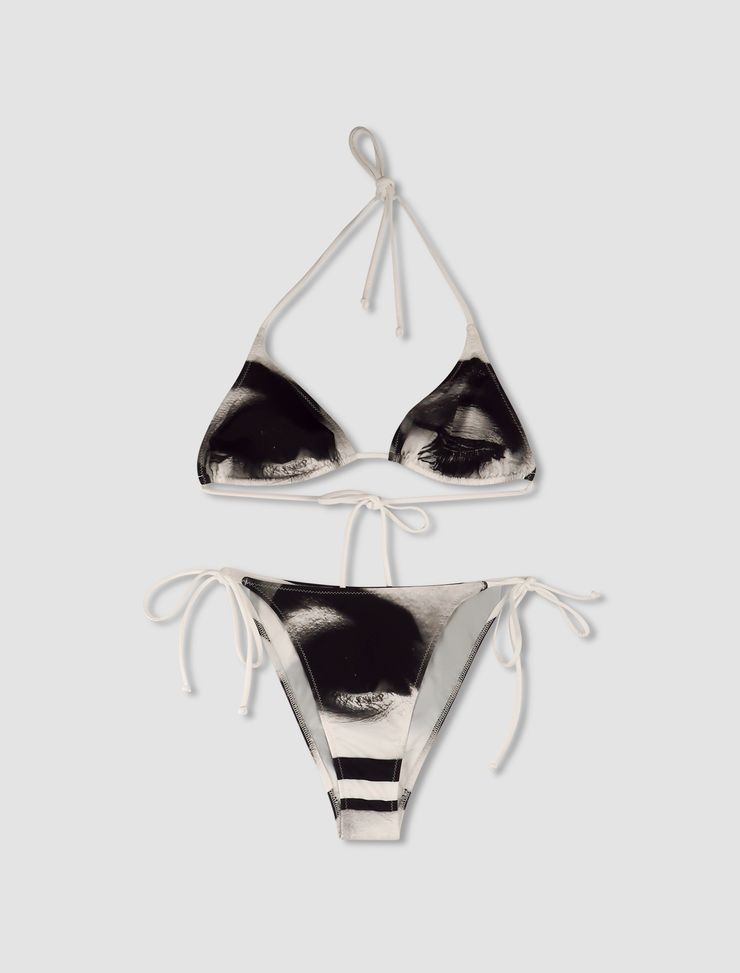 Jean Paul Gaultier's Eyes print bikini features a triangle top and adjustable ties. A print depicting eyes is present on the entire surface. Product Reference Code: 2430FBS008J552 0100