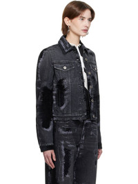 Non-stretch denim jacket. Flocked detailing, fading, and subtle distressing throughout. · Spread collar · Button closure · Flap pockets and welt pockets · Single-button cuffs · Locker loop at back collar · Leather logo patch at back hem · Logo-engraved silver-tone hardware Supplier color: Vintage black 100% cotton. Made in Italy 251808F060000