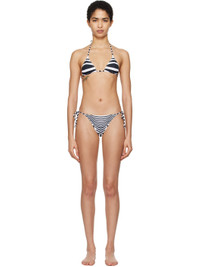 Stretch polyester jersey bikini top. Striped pattern throughout. · Self-tie halter neck · Self-tie fastening at back Stretch polyester jersey bikini bottom. Striped pattern throughout. · Self-tie straps at sides · Partially lined Supplier color: White/Black 83% polyester, 17% elastane. Made in Portugal 251808F105000