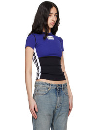 Stretch cotton ribbed jersey T-shirt. · Paneled construction · Crewneck · Logo patch at chest · Webbing trim at side seams · Locker loop at back collar Supplier color: Navy/Black 96% cotton, 4% elastane. Made in Portugal 251808F110027