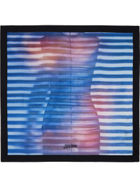 Square silk twill scarf. · Stripes and graphic printed throughout · Logo printed at face and back face · L26.5" x W26.5" Supplier color: Blue 100% silk. Made in Italy 252808F029001