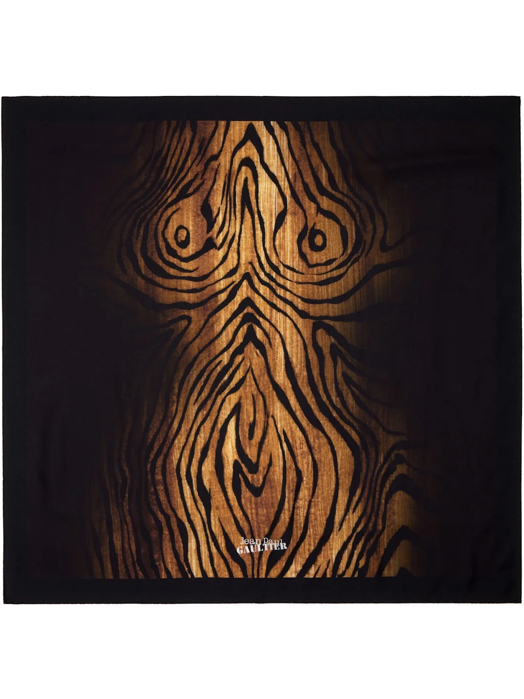 Square silk twill scarf. · Graphic printed throughout · Logo printed at face and back face · L26.5" x W26.5" Supplier color: Black 100% silk. Made in Italy 252808F029000
