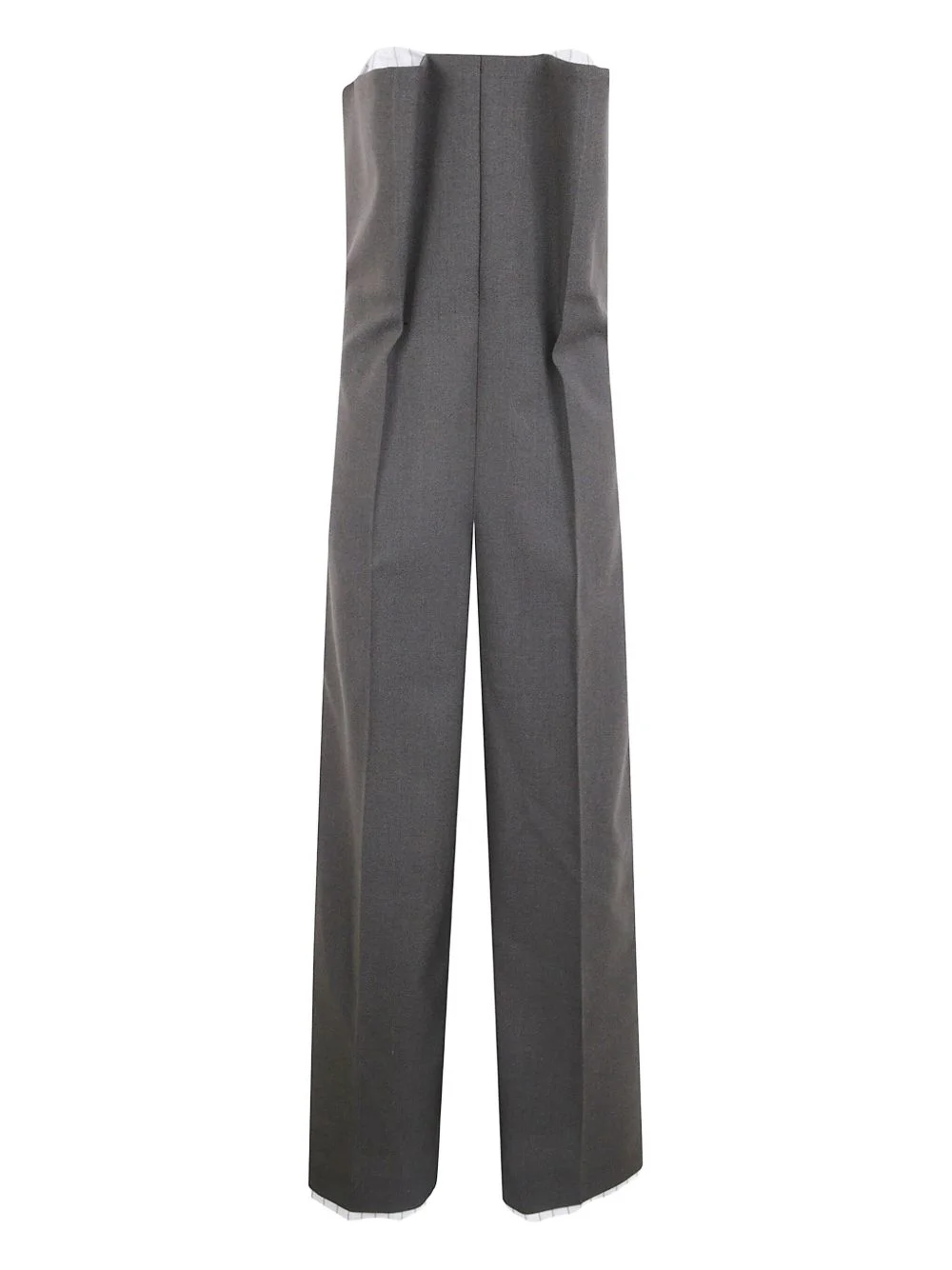 bustier jumpsuit Highlights - Grey - Strapless - Rear zip fastening - Press crease Made in France Composition Wool 88%, Polyamide 12% Washing instructions Read Manufacturer Guidelines