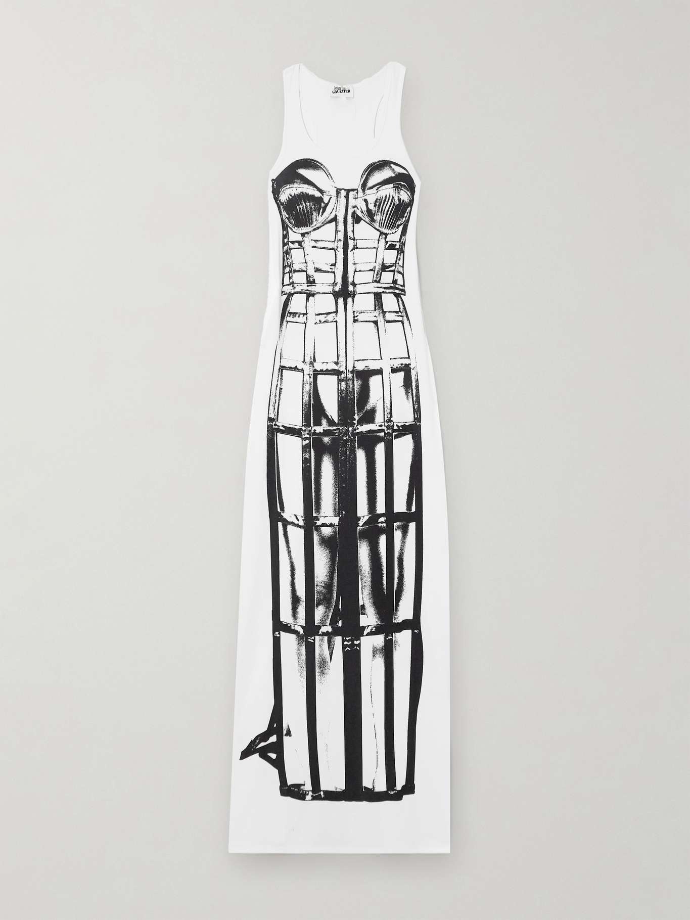 EDITORS'NOTES <i>Trompe l'oeil</i> is a Jean Paul Gaultier specialty and this maxi dress is printed to create the illusion of a metal cage. Cut from smooth stretch-jersey, it has a figure-skimming fit and racerback. SIZE & FIT Model measurements: - Fits true to size, take your normal size - Designed for a slim fit - Mid-weight, stretchy fabric - Model is 175cm/ 5'9" and is wearing a size Small - Bust: 78cm/ 31" - Waist: 62cm/ 24.5" - Hip: 83cm/ 32.5" DETAILS & CARE - White and black jersey - Slips on - 87% polyester, 13% elastane - Machine wash
