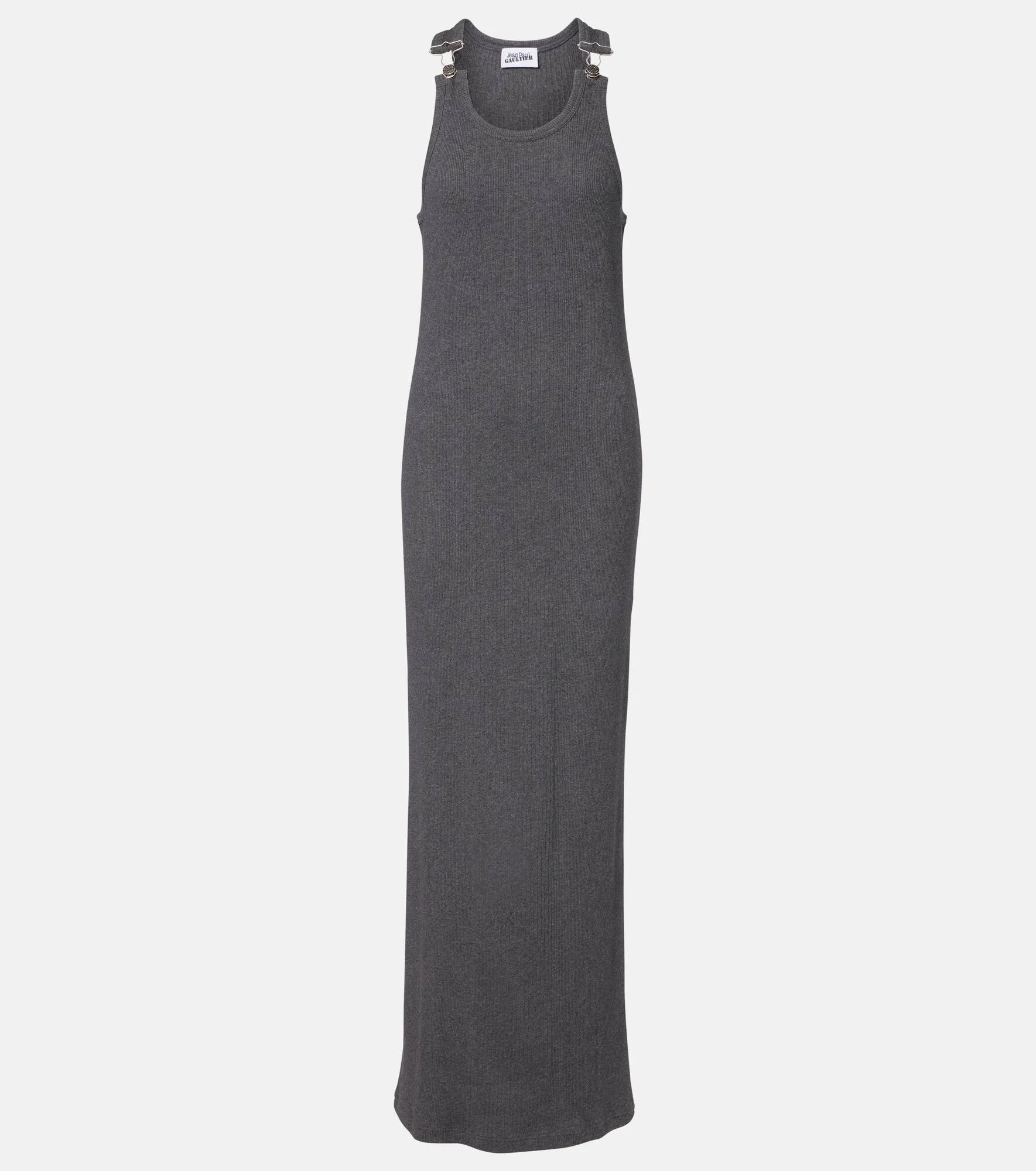 Jean Paul Gaultier hails the renaissance of vintage style codes through pop culture-inspired designs. This cotton jersey maxi dress is elevated with overall-inspired shoulder closures, merging casual ease with signature edge. Product Details - Material: 100% cotton - Care instructions: machine wash at 30 degrees - Made in Bulgaria - Designer color name: Dark Grey - Item color: gray - Item number: P01110225 Size & Fit - True to size - Cinched waist - Slightly stretchy fabric - The model seen in the picture is 178cm-5'10" and wearing a size XS