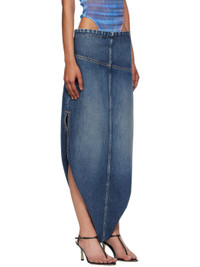 Non-stretch denim maxi skirt. · Fading and whiskering throughout · Concealed adjustable button belt · Two-pocket styling · Zip closure at side seam · Vented side seams · Logo patch at back waistband · Locker loop at back · Contrast stitching in tan Supplier color: Vintage blue 100% cotton. Made in Italy 252808F093001