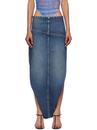 Blue Internal Belt & Zipped Opening Denim Maxi Skirt