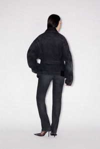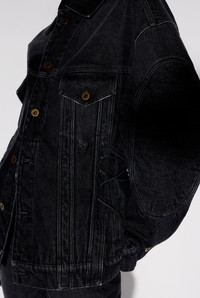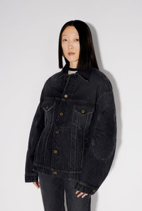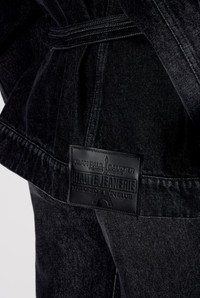 Gaultier TV Collection Black denim jacket with tone-on-tone lace-up in back and leather Haute Jeanerie label. PRODUCT DETAILS - Straight fit - One flap pocket - Two raglan pockets - Engraved Jean Paul Gaultier metallic button fastening - Material: 100% cotton - Made in Italy