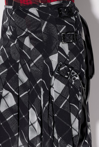 Gaultier TV Collection Black pleated tulle kilt with Tartan print. PRODUCT DETAILS - Pleated tulle - Three straps with black metal buckles on side - Invisible zip on side - Material: 100% polyamide - Made in Italy