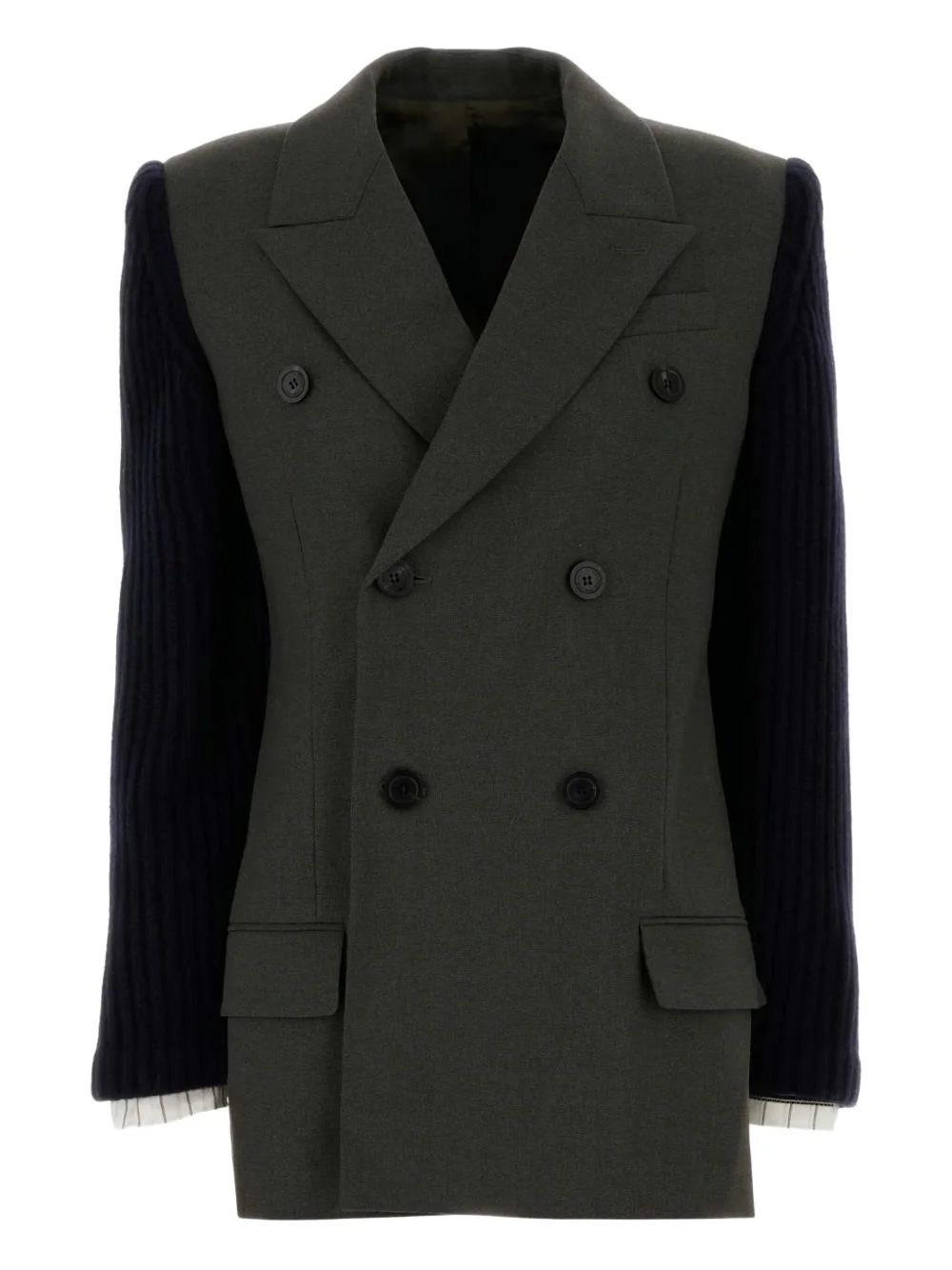 double-breasted blazer Highlights - Khaki green - Front button fastening - Long sleeves - Side flap pockets Made in Italy Composition Outer: Wool 88%, Nylon 12% Lining: Viscose 100% Washing instructions Read Manufacturer Guidelines