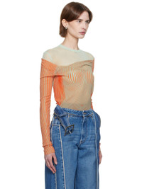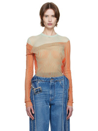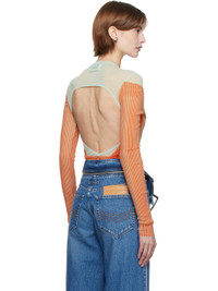 Sheer nylon tulle bodysuit. Gathering and striped trompe-l'oeil pattern throughout. · Layered and draped construction · Crewneck · Press-stud closure at bottom · Locker loop at back collar · Open back Supplier color: Mint/Coral 100% polyamide. Made in Italy 251808F358001