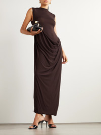 The simple shape of Jean Paul Gaultier's maxi dress is transformed by artful draping through the waist. It's made from smooth stretch-satin for a close fit and has a high neckline. Wear yours with point-toe pumps.