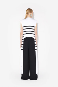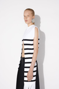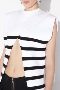 Black and white cotton Mariniere with slit in front and fringe details. PRODUCT DETAILS - Loose fit - Crew neck - Material: 100% brushed cotton - Made in Italy - Reference: 25/33-F-PL073-M086-0100