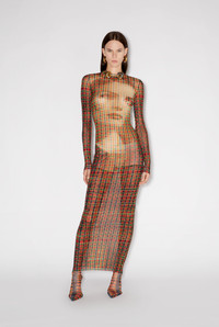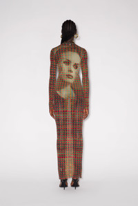 Gaultier TV Collection Long tulle dress with Tartan Face print. PRODUCT DETAILS - Tight fit - Crew neck - Stretchy material - Long sleeves - Material: 100% polyamide - Made in Italy