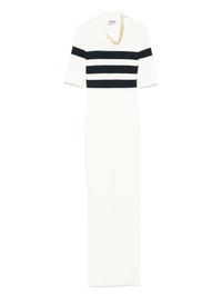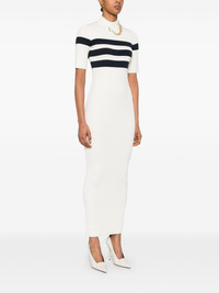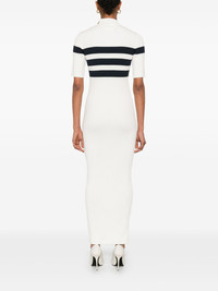 fine-ribbed maxi dress Highlights - White - Shoulder zip fastening - Mock neck - Short sleeves - Stripe detailing Made in Italy Composition Viscose 70%, Polyester 30% SIZE & FIT Model measurements Height 5 ft 10 in(1.77 m) Bust/Chest 33.07 in(84 cm) Hips 37 in(94 cm) Waist 24.8 in(63 cm) FittingInformation Designed for a close fit throughout Made from a midweight non-stretch fabric, this piece offers minimal elasticity when worn Washing instructions Dry Clean Only
