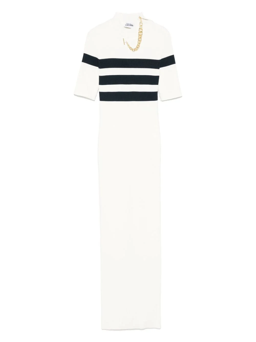 fine-ribbed maxi dress Highlights - White - Shoulder zip fastening - Mock neck - Short sleeves - Stripe detailing Made in Italy Composition Viscose 70%, Polyester 30% SIZE & FIT Model measurements Height 5 ft 10 in(1.77 m) Bust/Chest 33.07 in(84 cm) Hips 37 in(94 cm) Waist 24.8 in(63 cm) FittingInformation Designed for a close fit throughout Made from a midweight non-stretch fabric, this piece offers minimal elasticity when worn