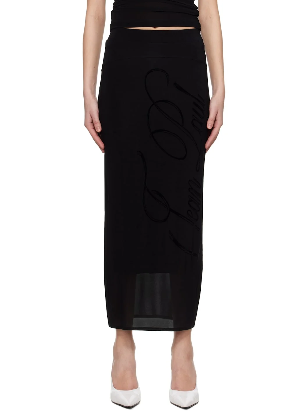 Semi-sheer viscose jersey maxi skirt. · Elasticized waistband · Logo flocked at front and back · Locker loop at back waistband · Partially lined Supplier color: Black 100% viscose. Made in Portugal 251808F092002