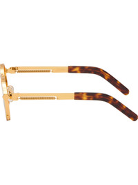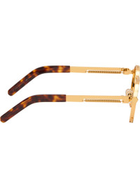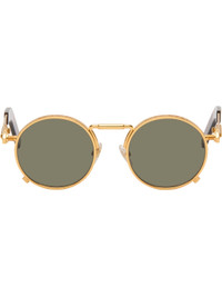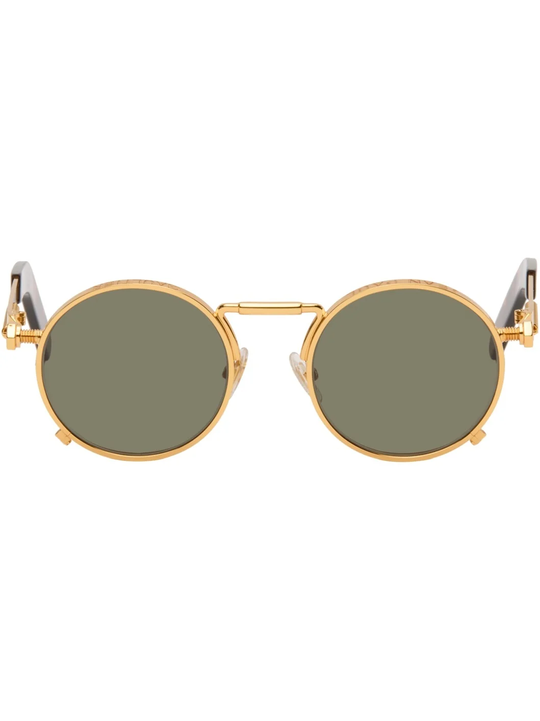Round metal-frame sunglasses. · Green lenses, category 3 · 100% UVA/UVB protection · Anti-glare coating · Logo-engraved rims · Adjustable rubber nose pads · Screw hardware at temples · Spring hardware at arms · Mazzucchelli acetate temple tips · Includes case · Size: 50.20 145 Supplier color: Gold Metal. Made in France 252808F005007