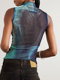 Jean Paul Gaultier's tank has a trompe l'oeil print that creates the illusion of wet fabric. It's made from tulle that closely hugs your frame and has a chic high neckline. Style yours with low-rise jeans. Size & Fit - Fits true to size, take your normal size - Designed for a very close fit - Lightweight, stretchy fabric - Model is 177cm/ 5'11" and is wearing a size XSmall Model measurements: - Bust: 80cm/ 31.5" - Waist: 65cm/ 25.5" - Hip: 89cm/ 35" Details & Care - Multicolored tulle - Slips on - 100% polyamide - Fully lined - Dry clean