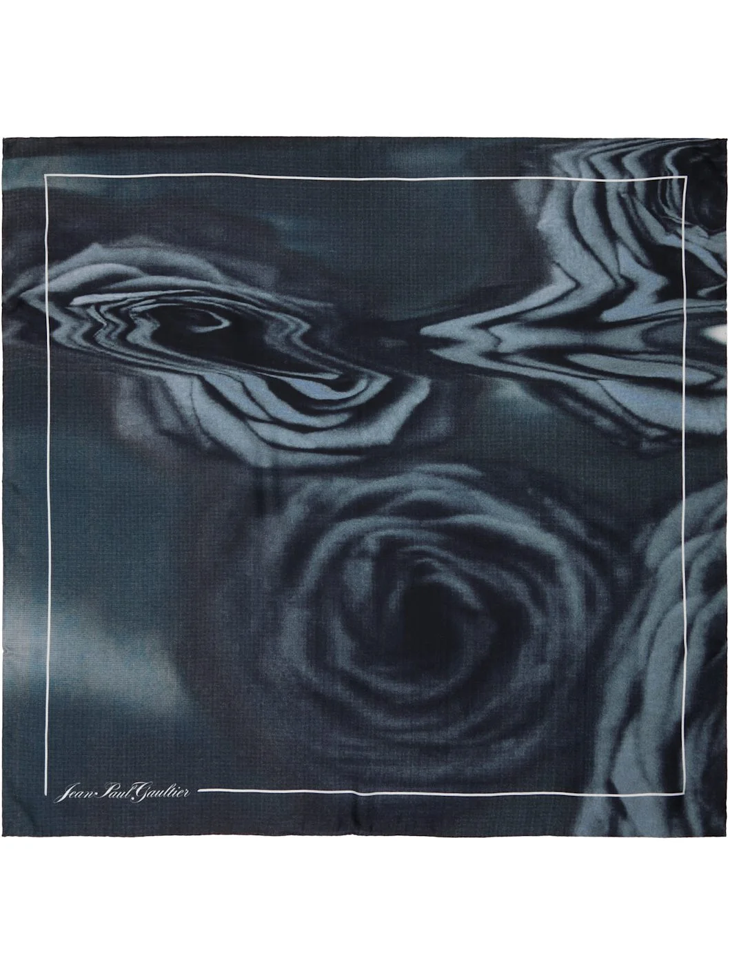 Square silk twill scarf. · Floral graphic and logo printed at face · L26.5" x W26.5" Supplier color: White/Grey/Black 100% silk. Made in Italy 252808F029003