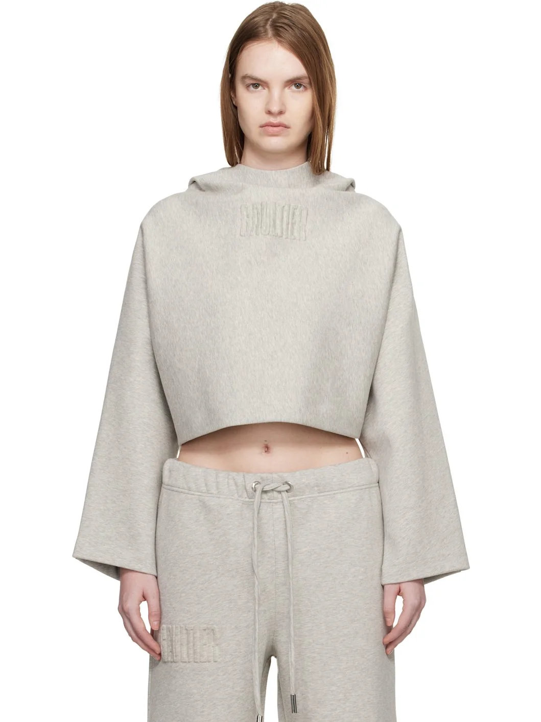 French terry hoodie. · Stand collar · Logo embossed at chest · Cropped hem · Dolman sleeves Supplier color: Grey 100% cotton. Made in Bulgaria 252808F097001