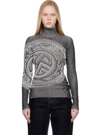 Rib-knit viscose-blend turtleneck. · Slim-fit · Logo graphic printed at front and sleeve · Locker loop at back collar Supplier color: Black/White 70% viscose, 30% polyamide. Made in Italy 252808F099012