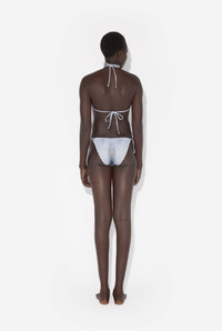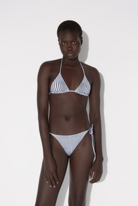Black and white bikini top with striped body print. PRODUCT DETAILS - Tied fastening on back - Materials: 83% polyester, 17% elastane - Made in Portugal - Reference: 25/33-F-SG042-J571-0100