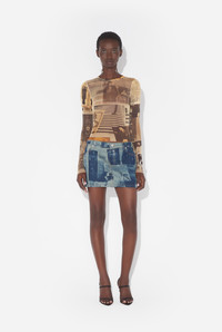 Ecru tulle baby tee with double sleeves and “Journal” print. PRODUCT DETAILS - Slim fit - Crew neck - Stretchy material - Double sleeves sewn at the shoulders - Material: 100% polyamide - Made in Italy - Reference: 26/01-W-TO416-M013P-030830
