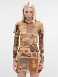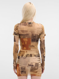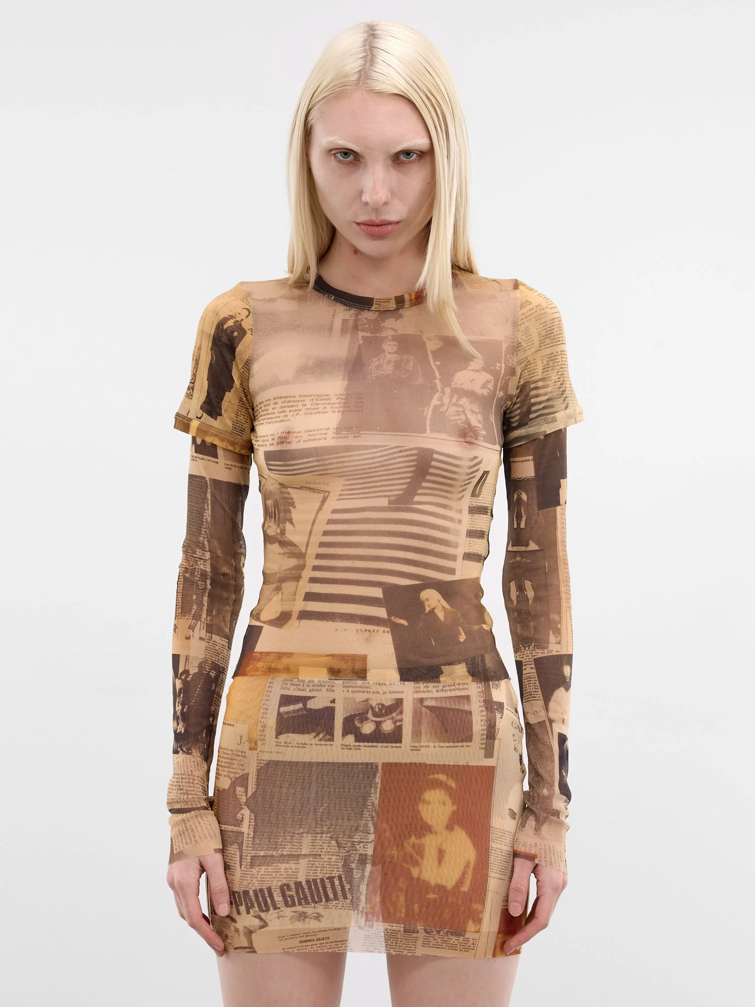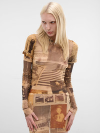 T-shirt in beige designed with layered nylon mesh and a baby-tee silhouette. Featuring: • Slim fit • Layered nylon mesh construction • Layered baby tee design • All-over “journal” graphic print • Semi-sheer finish • Crewneck • Double short and long sleeves • Made in Italy • 100% Polyamide • Standard sizing Model is 5'9" wearing size S. Bust: 32" Waist: 25" Hips: 34"