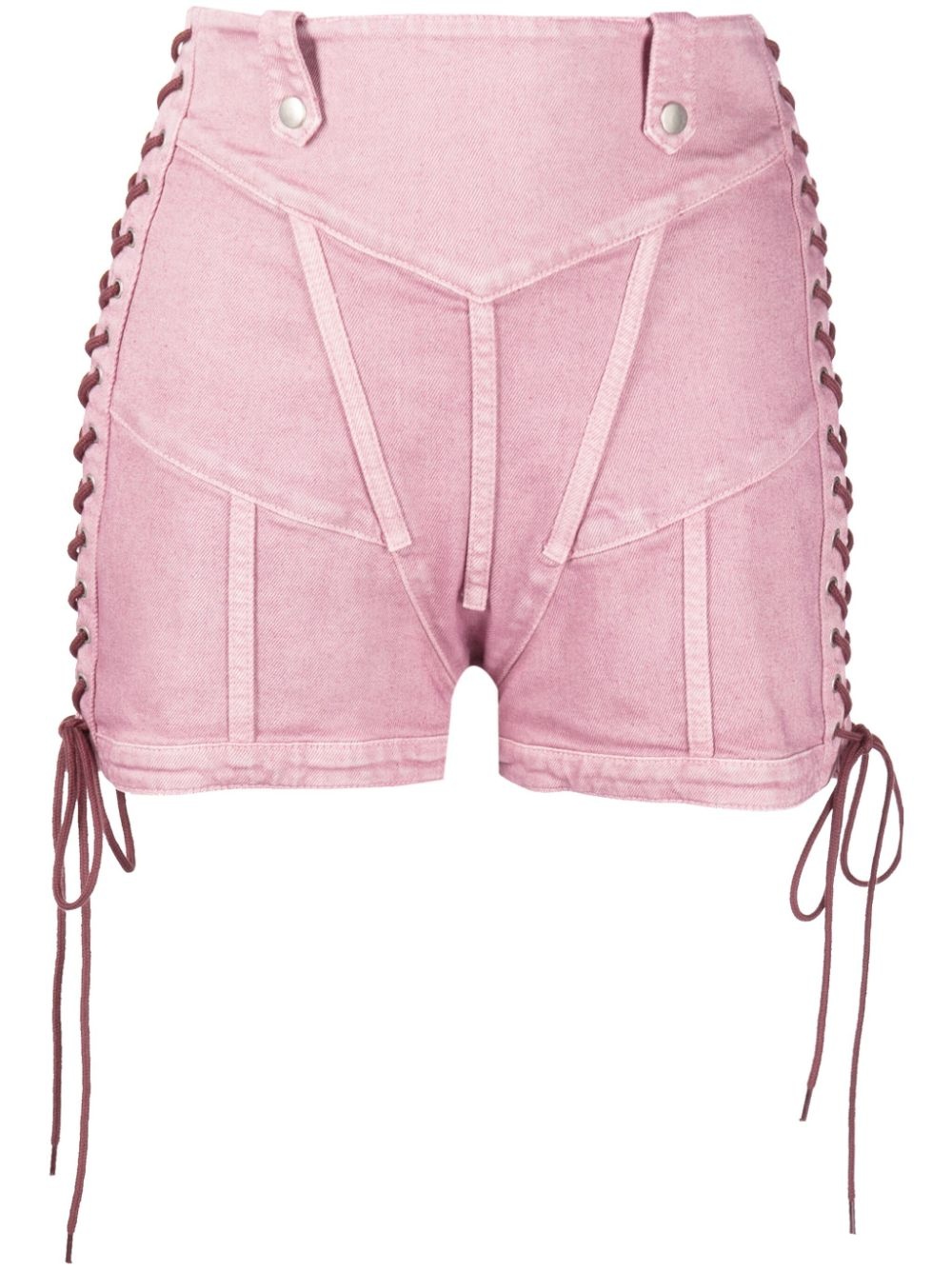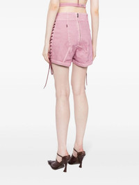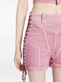 JEAN PAUL GAULTIER WOMEN Washed Laced Denim shorts Lilac Highlights powder pink cotton blend washed denim mid-rise side lace-up fastening thigh-length Composition Cotton 80%, TENCEL™ 14%, Polyamide 4%, Elastane 2% Washing instructions Machine Wash Wearing The model is 1.78 m wearing size 38