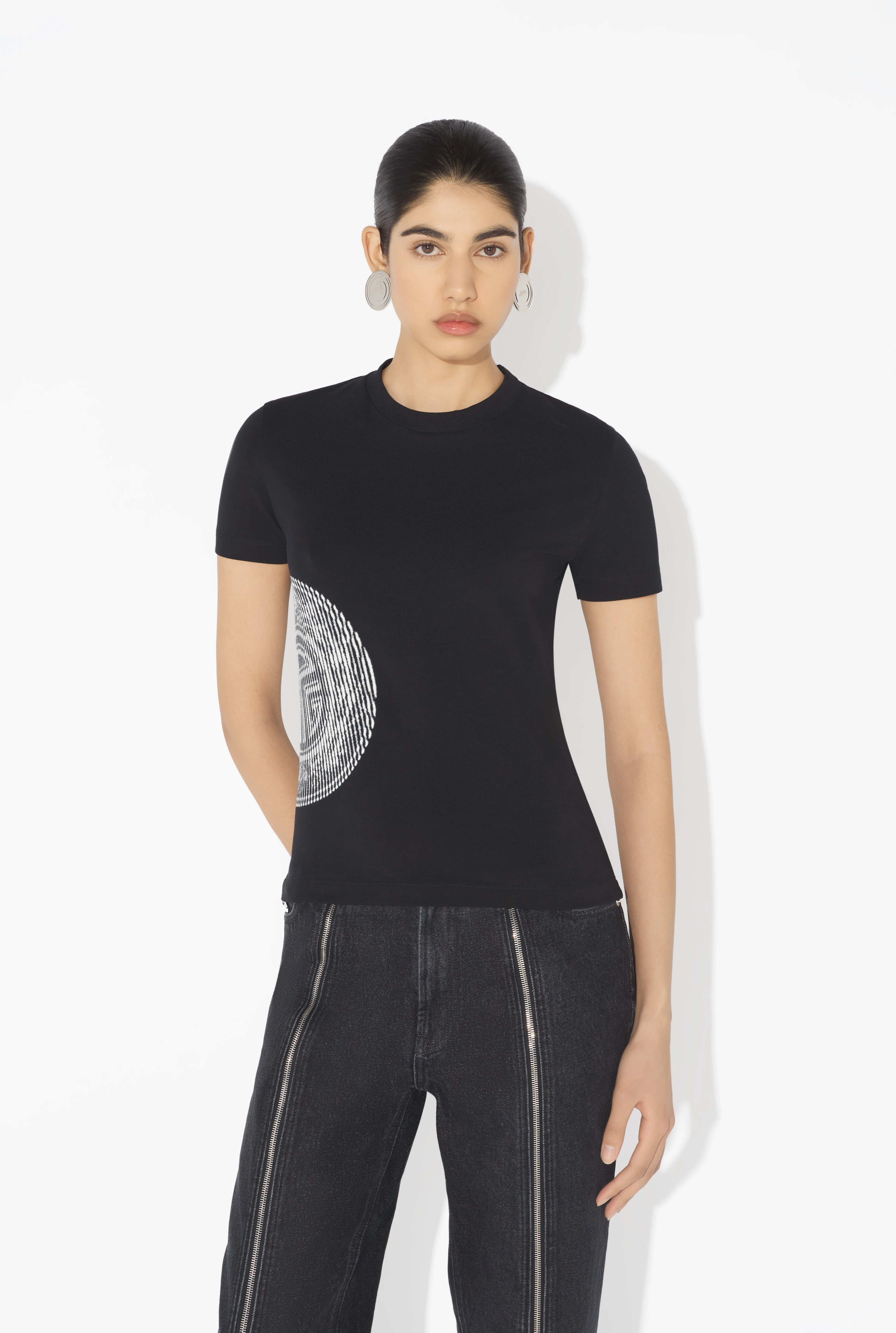 Black jersey baby tee with Jean Paul Gaultier laurel logo stamped print. PRODUCT DETAILS - Semi-slim fit - Crew neck - Screen print - Materials: 96% organic cotton, 4% elastane - Made in Portugal - 25/04-W-TO376-J002-0001