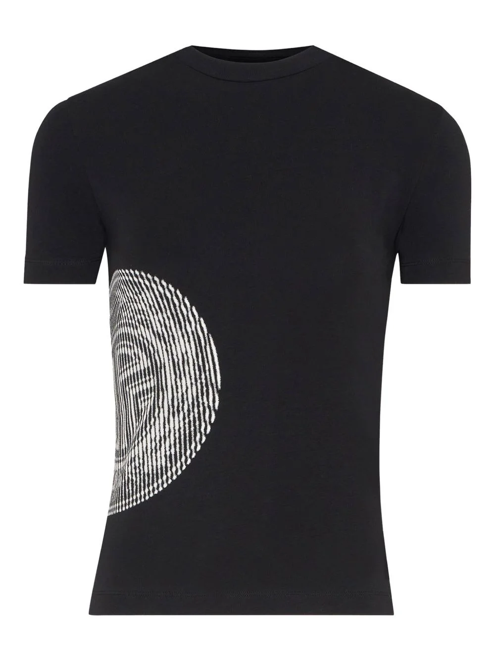 linear-print short-sleeved T-shirt Highlights - Black - Short sleeves - Round neck - Linear print - Close-fitting Imported Composition Organic Cotton 96%, Elastane 4% Washing instructions Read Manufacturer Guidelines