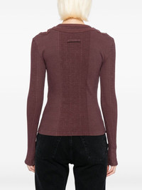 logo-patched knit top Highlights - Burgundy - Crew neck - Straight hem Imported Composition Cotton 96%, Elastane 4% SIZE & FIT Model measurements Height 5 ft 10 in(1.78 m) Bust/Chest 31.88 in(81 cm) Hips 37 in(94 cm) Waist 25.19 in(64 cm) FittingInformation Designed for a close fit throughout Made from a midweight stretch fabric, this piece offers elasticity and flexibility when worn Washing instructions Machine Wash