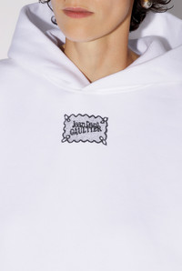 Gaultier TV Collection Oversized white cotton sweatshirt with Jean Paul Gaultier printed label. PRODUCT DETAILS - Oversized fit - Crew neck - Screen-printed label - Material: 100% cotton - Made in Bulgaria