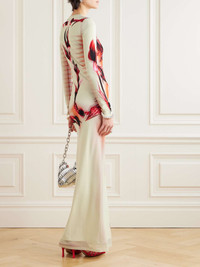 Jean Paul Gaultier's maxi dress brings together two signatures from the brand's archives – the intricate florals and mariniere stripes are placed to highlight the figure and create a trompe l'oeil effect. It's cut from stretch-mesh to skim the body and has an opaque jersey lining. Size & Fit - Fits true to size, however those who are between sizes should take the smaller size - Designed for a slim fit - Long in length, may wish to alter - Lightweight, stretchy fabric - Model is 180cm/ 5'11" and is wearing a size XSmall Model measurements: - Bust: 81cm/ 32" - Waist: 63cm/ 25" - Hip: 91cm/ 36" Details & Care - Multicolored stretch-mesh - Slips on - 87% polyester, 13% elastane - Machine wash